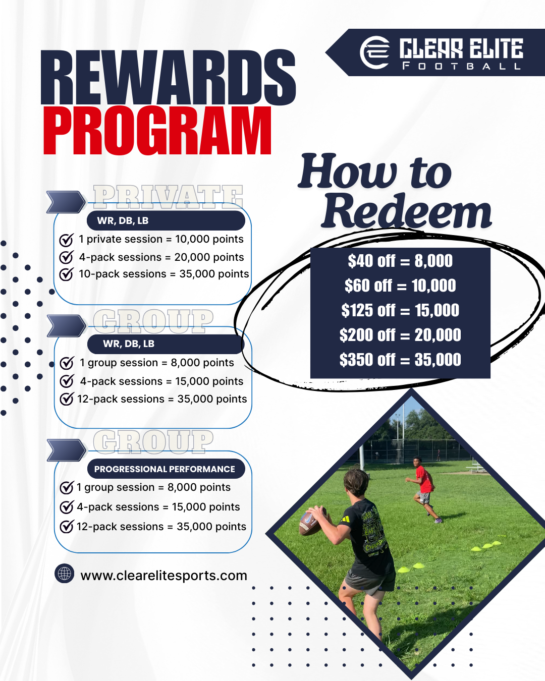 What is the purpose of the Grind Points? We believe your dedication to your child’s development both on and off the field deserves recognition. We have created a program that rewards your continued loyalty and support to Clear Elite Sports while directly investing in your athlete’s future. This is our way of giving back to you for everything you’ve done for them.